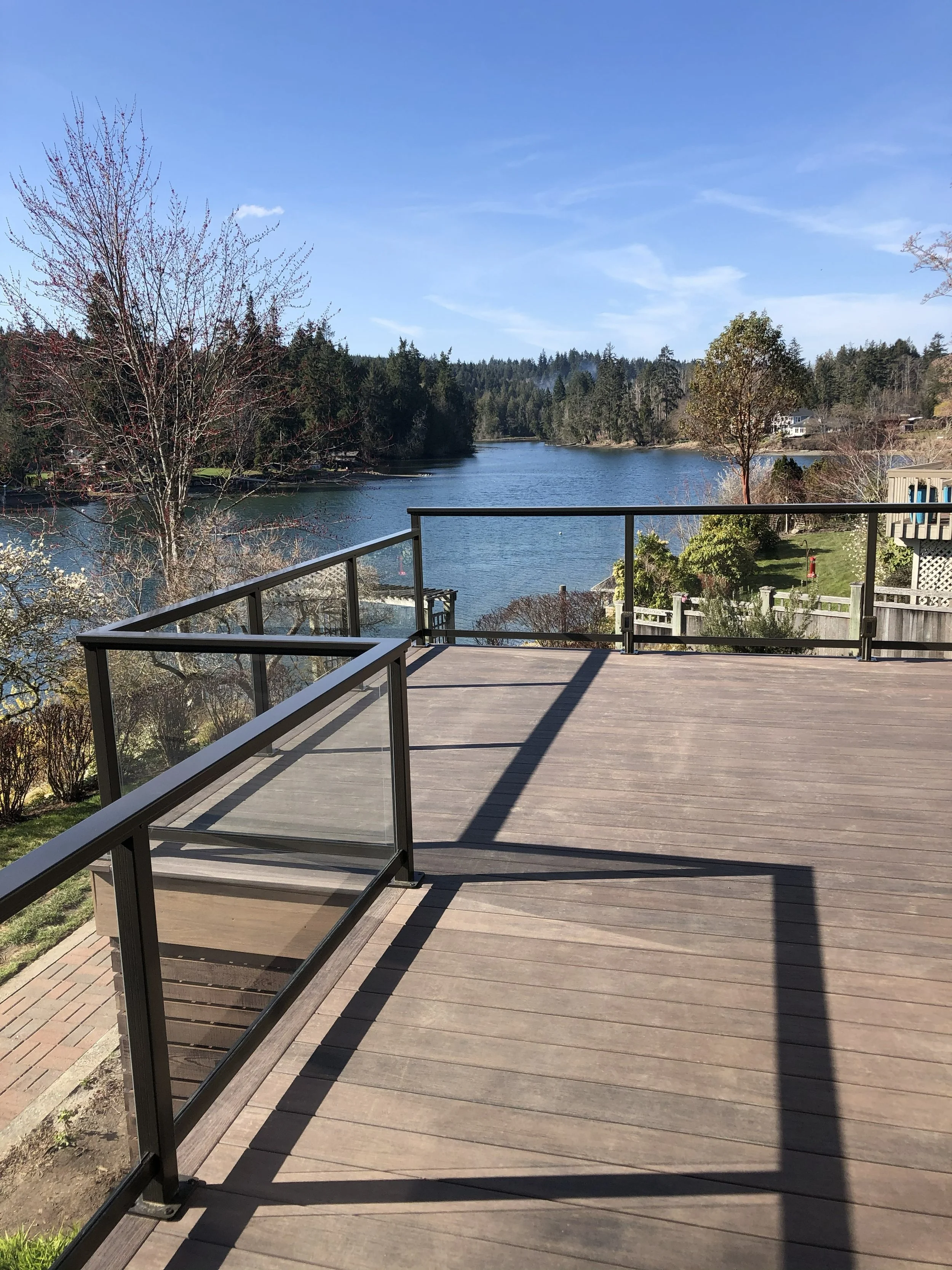 Glass wind walls are designed to block wind while preserving your view. They’re ideal for waterfront homes, elevated decks, and exposed locations where wind is a constant factor. Tempered safety glass and aluminum framing ensure long‑term performance in Northwest weather.