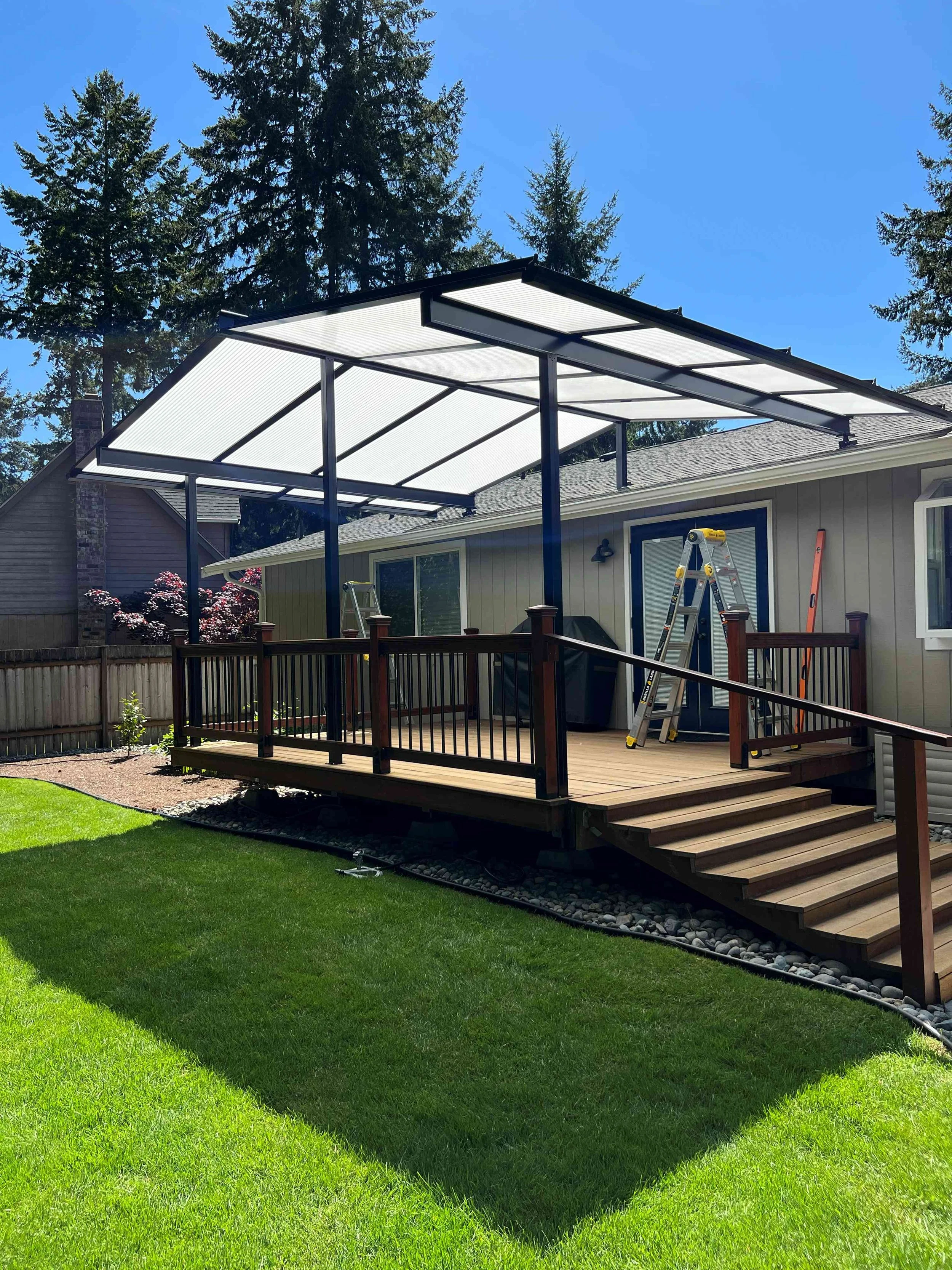 “Explore our gallery of engineered aluminum‑frame patio covers and premium composite/PVC decks designed for Northwest weather. Each project highlights clean installation, durable materials, and outdoor living spaces built to last. See real examples of patio covers integrated with new and existing decks.”