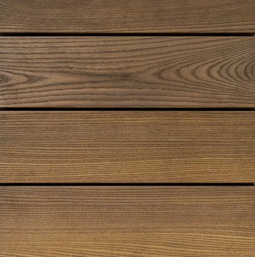 Thermally modified white ash decking from Arbor Wood Co. has a range of benefits, including increased dimensional stability, reduced moisture content, and improved resistance to decay and insect damage